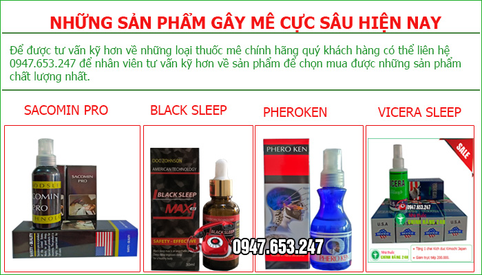 Những loại thuốc mê mang lại hiệu quả cao phải kể đến như pheroken hay vicera sleep hay sacomin pro hay black sleep… đây là những loại thuốc mê đang bán rất chạy trên thị trường gây mê cực sâu. Việc mua những sản phẩm này có xuất xứ rõ ràng cũng như shop uy tín sẽ giúp các bạn không mua phải hàng giả hàng nhái hàng kém chất lượng nên bạn hoàn toàn yên tâm.